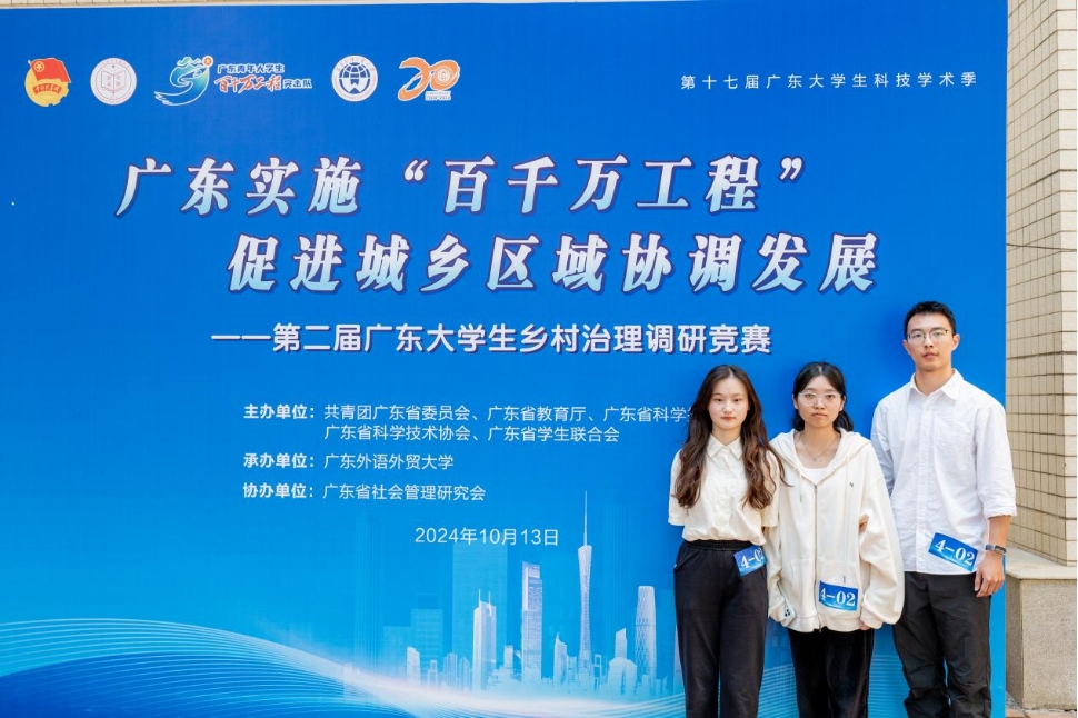 10月13日,由省教育厅、团省委、省科技厅等相关部门联合举办的第二届广东大学生乡村治理调研竞赛决赛在广东外语外贸大学进行。为深入学习贯彻习近平新时代中国特色社会主义思想和党的二十大精神、党的二十届三中全会精神,贯彻落实习近平总书记视察广东重要讲话、重要指示精神,引导华商学子把课堂学习和社会实践紧密结合起来,厚植爱国情怀,练就兴国本领。学校团委组织我校两支百千万工程突击队队伍参加决赛。我校百千万工程突击队以优异表现突出重围,斩获佳绩,为校争光!其中,“泉”新登场队 的项目《上清韵旅——基于元宇宙技术构建乡镇数商兴农文化新体验的路径探索》荣获省赛一等奖;石韵数博队项目《以红色党建引领多元创意赋能梅州古文化“蝶变”——当代青年如何激发乡村振兴内生力量的路径探索和实践研究》荣获省赛二等奖。