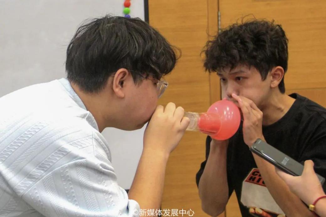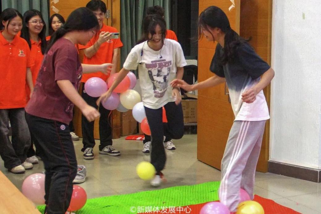 在指压板上,学生骨干们脚绑气球,男女生代表并肩作战。他们沉着冷静,集思广益制定战术,眼神交流间充满默契,每一次巧妙的闪避和精准的进攻,都体现了他们的聪明才智。紧张刺激的比赛中,学生骨干们彼此间默契配合,气球爆裂声与学生欢笑声交织。