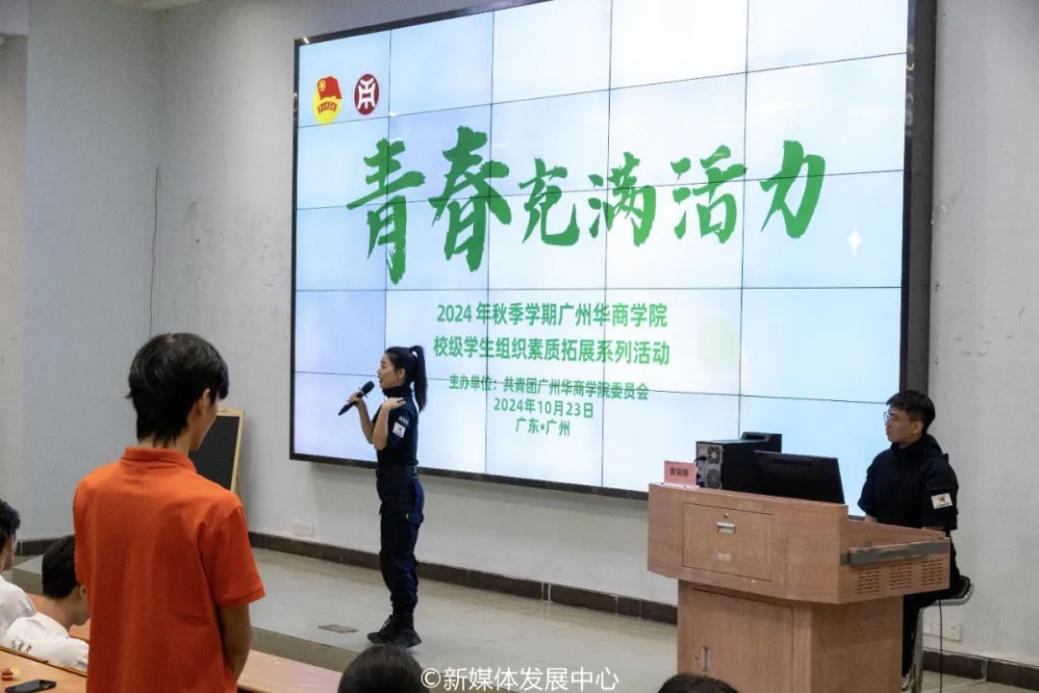 为贯彻落实习近平总书记关于青年工作的重要论述,提升校级学生组织学生骨干的综合素质,增强团队协作能力,营造良好的团结协作氛围,汇聚青春力量,10月23日晚19:00,校团委在广州校区展开励志楼C408开展“青春充满活力”广州华商学院2024年秋季学期校级学生组织素质拓展系列活动。活动邀请到广东华商技工学校团委书记黄丽娜主持。广东华商技工学校陈俊澎老师、广州华商学院校团委团干芦婉云老师协助活动开展。本次破冰素质拓展活动分为开场互动、破冰游戏、分享表彰三个环节。