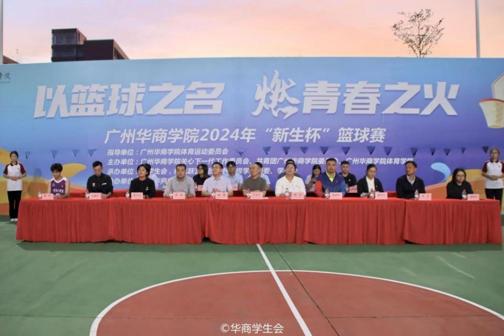 风华正茂青春时,莫负时光永逐梦。为丰富华商学子校园文化生活,涵养团队合作精神和坚韧不拔的意志品质,展现华商青年风采,10月23日18:00,学校团委在肇庆校区篮球场举行广州华商学院2024年“新生杯”篮球赛开幕式。出席本次开幕式的嘉宾有:广州华商学院副校长王卫平教授,团四会市委周莹副书记,校团委陈刚书记,体育学院院长助理周润华老师,后勤保卫办公室徐强主任,校团委副书记陈巧巧老师,校团委兼职副书记朱宁宁老师,体育学院李贵老师,继续教育学院吕满华老师,校团委专职团干、校学生会指导老师杨图珍,校团委专职团干胡万培老师、何以立老师,肇庆校区职能部门教师代表,二级学院团学老师以及参赛学生代表。