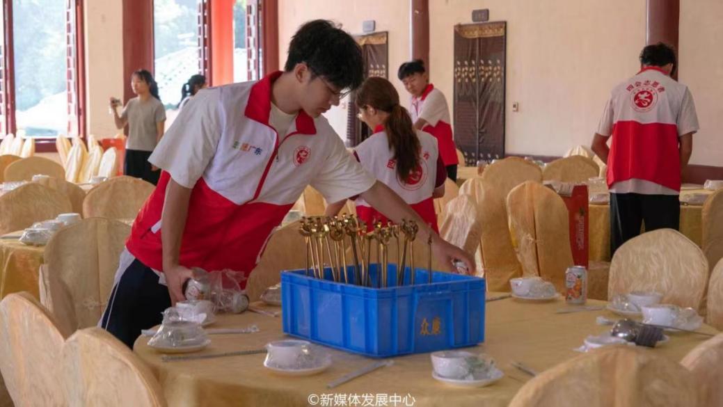 与此同时,志愿者队则在天音塔内忙碌地摆放物资,为活动的顺利进行做好后勤保障工作。他们还前往贞山宾馆迎接干部,并热情引导干部们到达活动现场。在巡游过程中,志愿者们手持数字旗子,在浩浩荡荡的人流中维持秩序,指挥交通,确保巡游队伍的顺利行进。