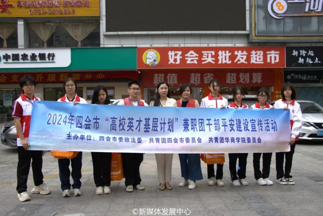 为深入贯彻习近平新时代中国特色社会主义思想和党的二十届三中全会精神,培育和践行“奉献、友爱、互助、进步”的志愿精神,鼓励和引导我校青年学生用实际行动讲好华商青年志愿者故事。2024年10月25日,广州华商华商学院团委联合四会市委政法委、团四会市委组织“高校英才基层计划”大学生兼职团干部在四会市马田市场、紫金广场开展2024年四会市“高校英才基层计划”兼职团干部平安建设宣传活动。深化校地合作,扩大平安建设宣传覆盖面,切实提升四会市群众安全感和满意度,构建更高水平的平安四会。