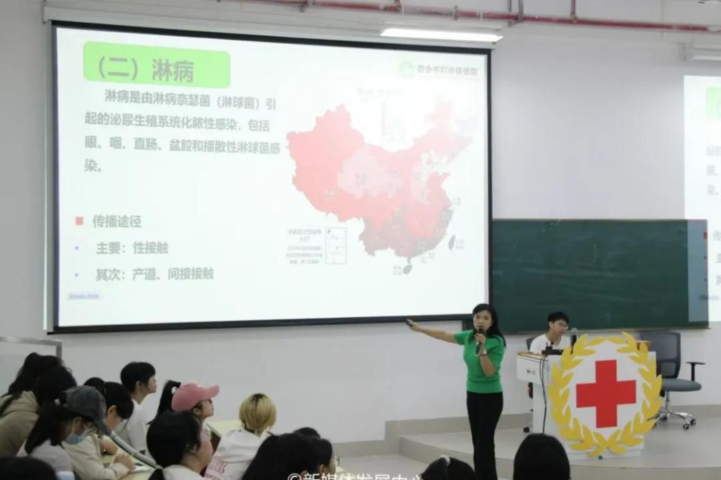 在性疾病传播知识板块,谢艳芬老师用详实的图文资料、用生动的案例、通俗易懂的语言阐释性疾病的症状、危害,同时,对艾滋病的定义、传播途径以及病毒特性进行详细解释。她指出,艾滋病是由人类免疫缺陷病毒(HIV)引起的一种传染病,主要通过性传播、血液传播和母婴传播三种途径。她强调,当代青年大学生要自觉担负使命,提高社会意识,维护自身与社会的健康,要做自己健康的第一责任人。