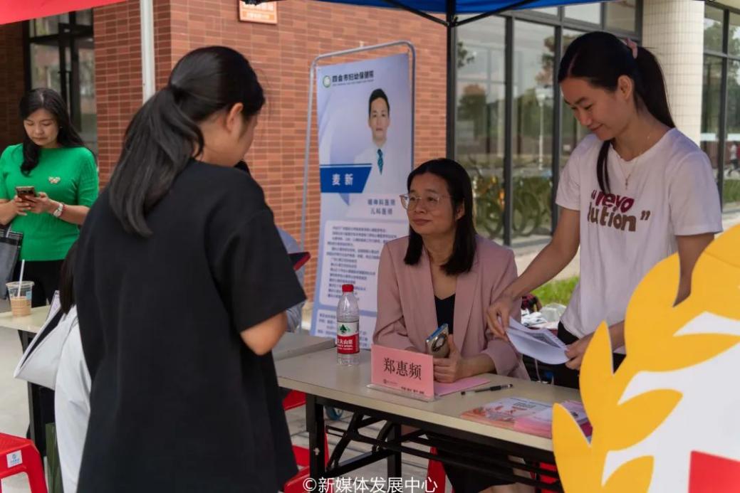 线下宣传活动中,各单位在19号楼下设置摊点。来自四会市妇幼保健院的专家们针对同学们的提问进行了耐心细致的解答,进一步加深大家对两癌知识、艾滋病和性病防治知识的理解。