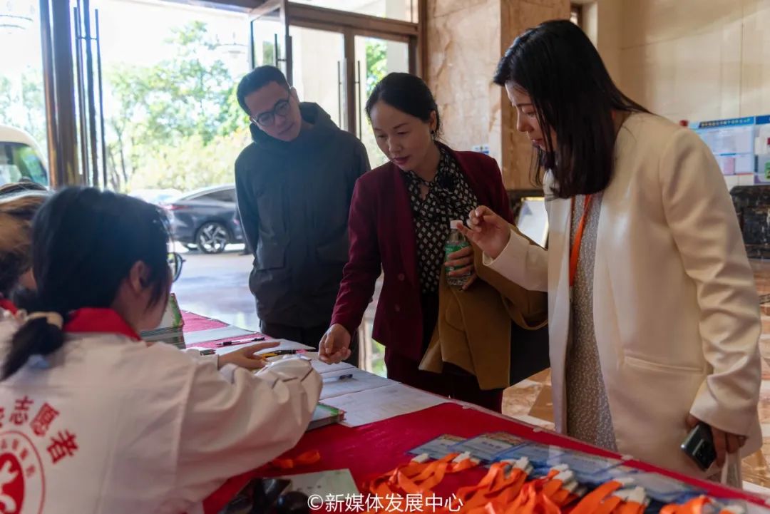 在岭南东方酒店,华商学院青年志愿者协助整理派发资料、嘉宾签到随车服务、提供咨询等等,展现了华商志愿者的热情和朝气。