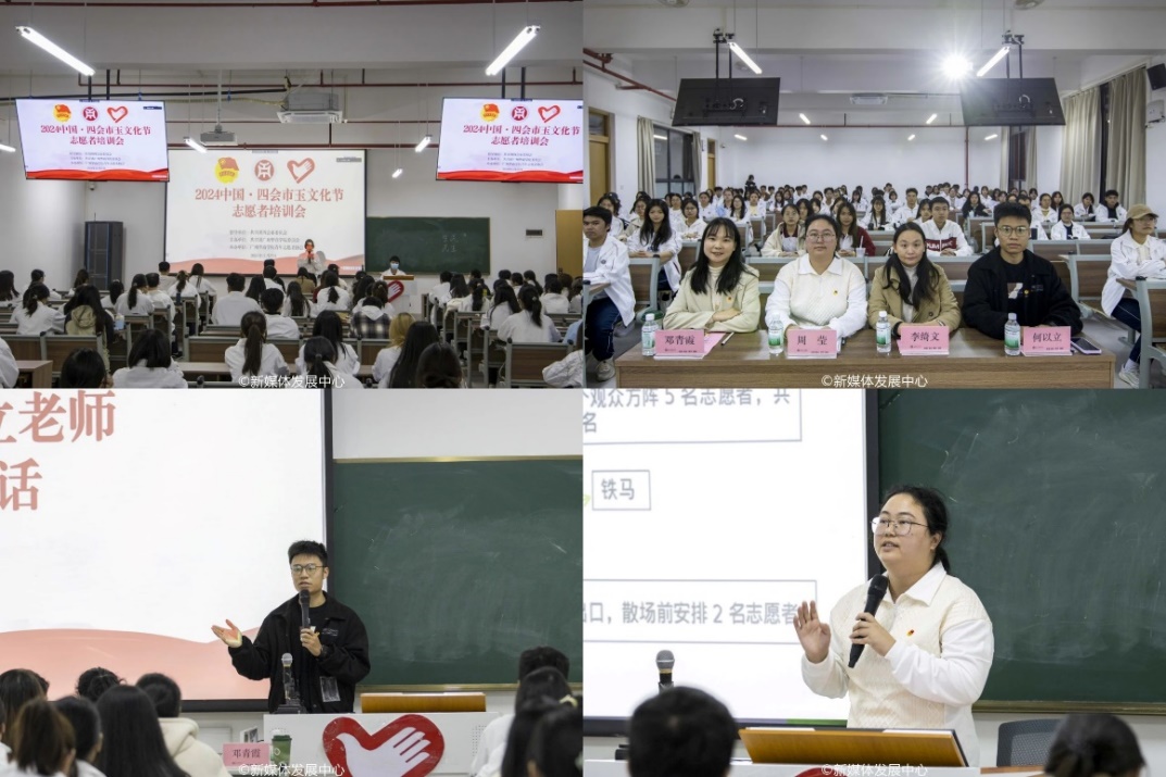 11月27日,我校团委联合团四会市委于肇庆校区开展2024中国·四会玉文化节志愿者培训会。团四会市委副书记周莹、团四会市委办公室主任邓青霞、团四会市委李绮文、校团委何以立老师及各志愿者参与本次培训。本次培训主要围绕志愿者工作岗位、服务内容、仪容仪表等,通过系统且针对性的讲解与指导,帮助志愿者们快速熟知自身工作任务。