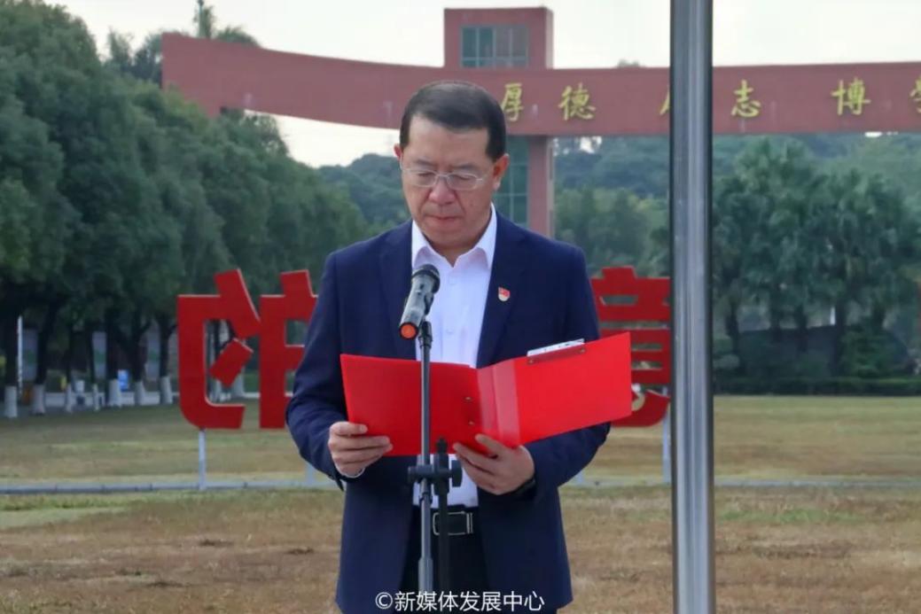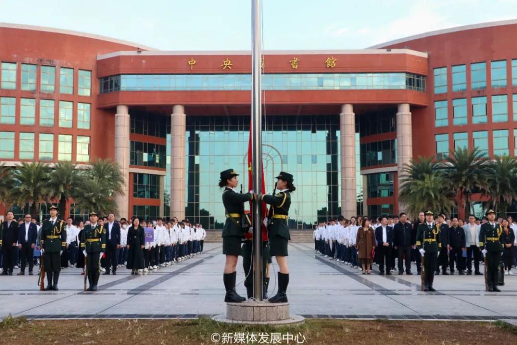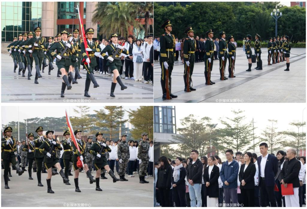 学校党委书记陈玉欢教授,校党委副书记、纪委书记吕峻闽副校长,副校长王卫平教授,副校长许娜副教授,肇庆校区党委书记苏宁,校长助理覃少冰,学校各党群部门负责人、各学院党委书记、学工负责人、校院两级团组织负责人、学生会指导老师及校级学生组织代表、各学院学生代表近2000人参加本次升旗仪式。