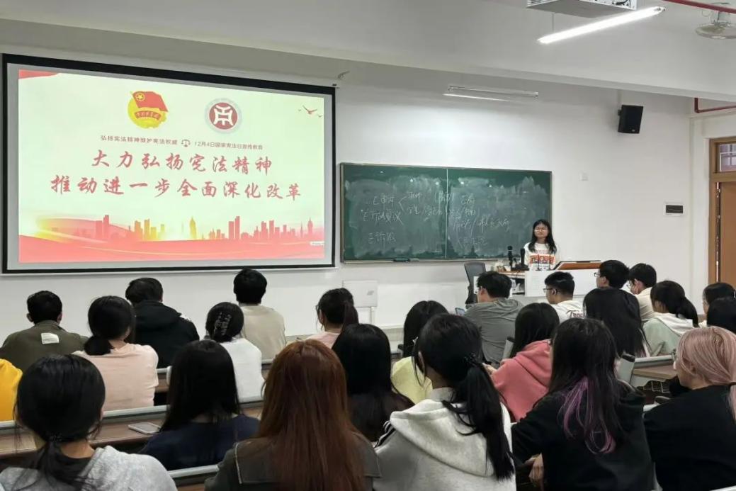 2024年12月4日是国家的第十一个宪法日。为全面贯彻落实党的二十大和党的二十届三中全会精神,深入学习宣传贯彻习近平法治思想,增强华商青年的宪法意识和法治观念,培养华商师生尊法、学法、守法、用法的法治意识,弘扬宪法精神,维护宪法权威,学校团委于双校区举行以“大力弘扬宪法精神,推动进一步全面深化改革”为主题的系列学习宪法活动。