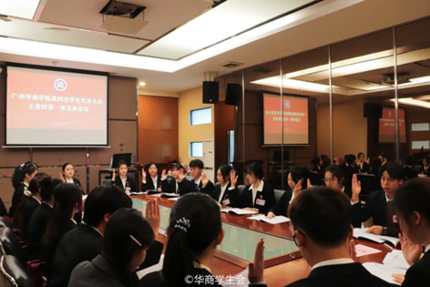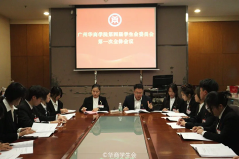 广州华商学院第四届学生会委员会第一次全体会议于16:00顺利召开,本次会议由陈刚书记主持。