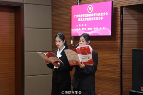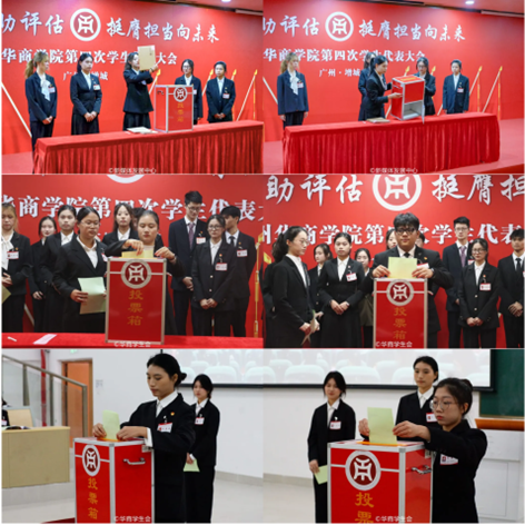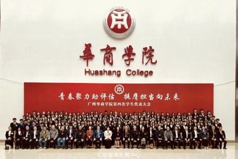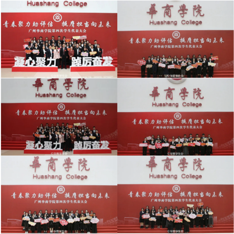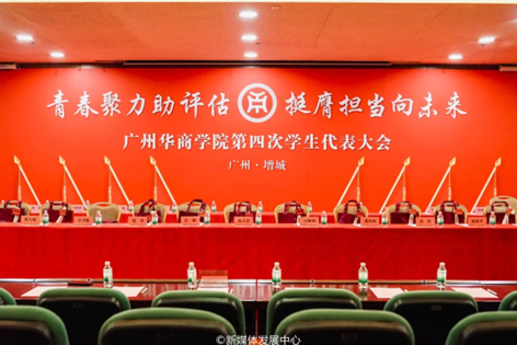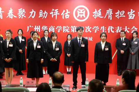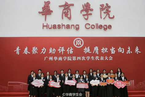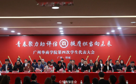 青春聚力助评估,挺膺担当向未来,广州华商学院第四次学生代表大会。
