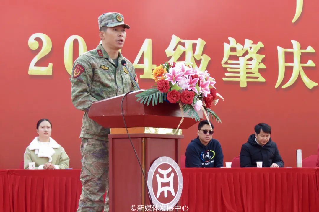 寒风凛冽,掠过训练场华商学子傲立风中朝气蓬勃,步伐铿锵坚韧意志,沸腾激情踏上严冬特训征途他们即将在迷彩旅途中迎接挑战锻造钢铁意志,铸就无畏精神2024年12月30日上午8:30广州华商学院2024级肇庆校区新生军训动员大会在肇庆校区田径场顺利举行蓝天映衬,青春如火严冬不惧,勇往直前。