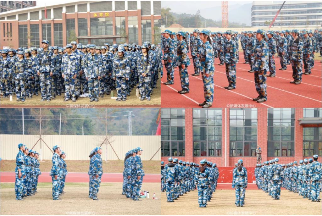 参训的同学们以饱满的精神有序进入训练场地集合快速整齐列队迎接军训。