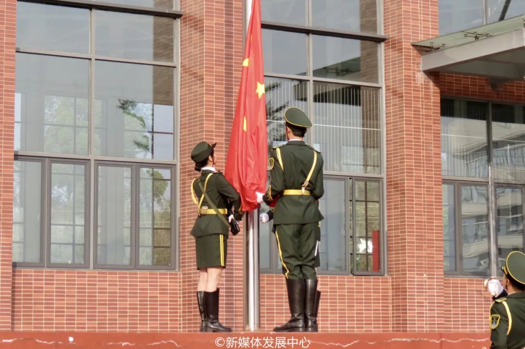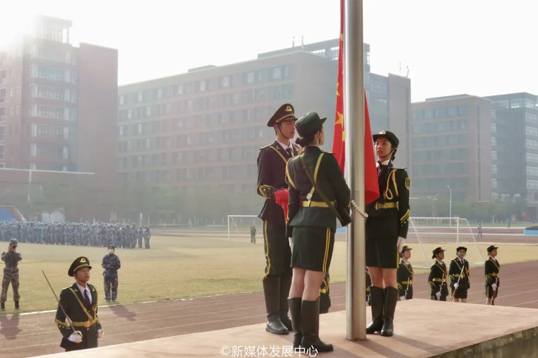 于冬日的晨曦中国护队整齐的排列庄严肃立地面向升旗台鲜艳的国旗在激昂的旋律中傲然升起他们目光坚毅声音里饱含对祖国深沉的爱。
