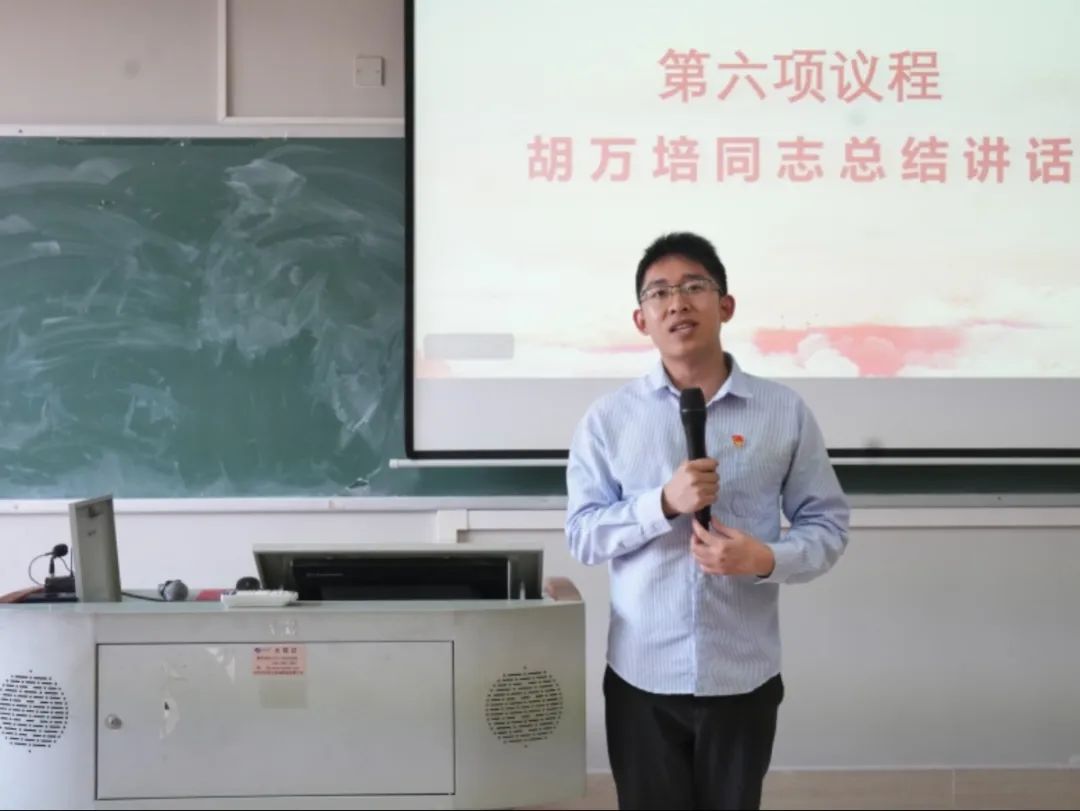 机关第一党委校团委党支部胡万培同志对本次会议进行总结讲话。他表示,通过召开民主评议会,不仅能及时发现支部存在的问题,更能夯基聚力,今后支部工作将从以下方面进一步发展。一、筑牢思想根基,提高政治站位。二、提升政治素养,践行实干担当。三、强化自身建设,加强日常专题学习。四、勇担使命,充分发挥党员先锋模范作用。