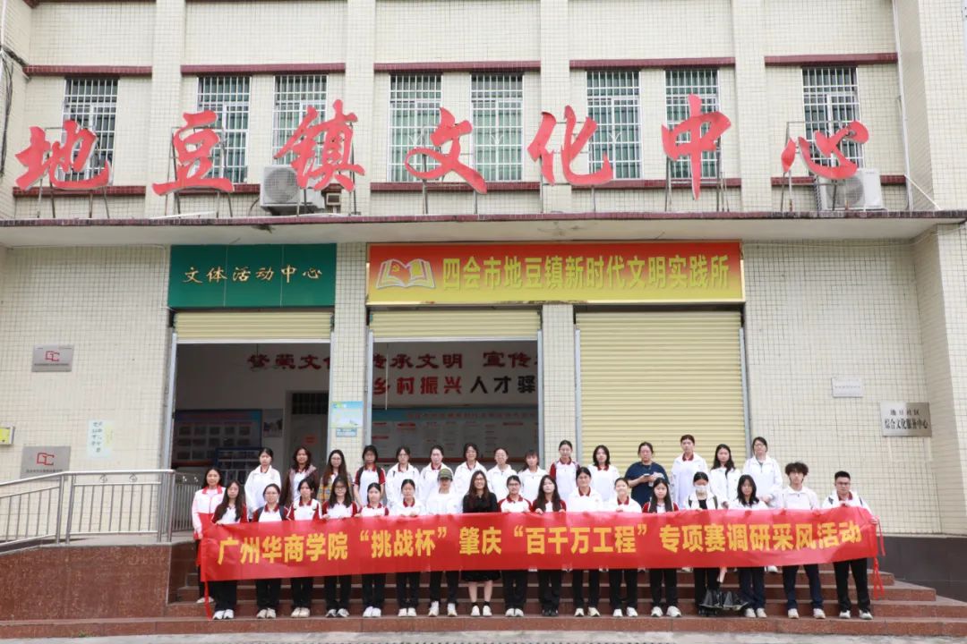 为深入学习贯彻习近平总书记关于青年工作的重要思想和对广东系列重要讲话和重要指示精神,认真贯彻落实省委“1310”具体部署,助力深入实施“百千万工程”,引导大学生关注县镇村发展需求,促进高校科研成果与地方产业需求对接,为第十八届“挑战杯”课外学术科技作品“百千万工程”注入创新动能。4月8日下午,在学校党委的领导下,在团四会市委、四会市地豆镇人民政府的支持下,肇庆校区团委组织近50名师生代表在四会市地豆镇旧电影院组织开展广州华商学院“挑战杯”肇庆“百千万工程”专项赛调研采风活动。