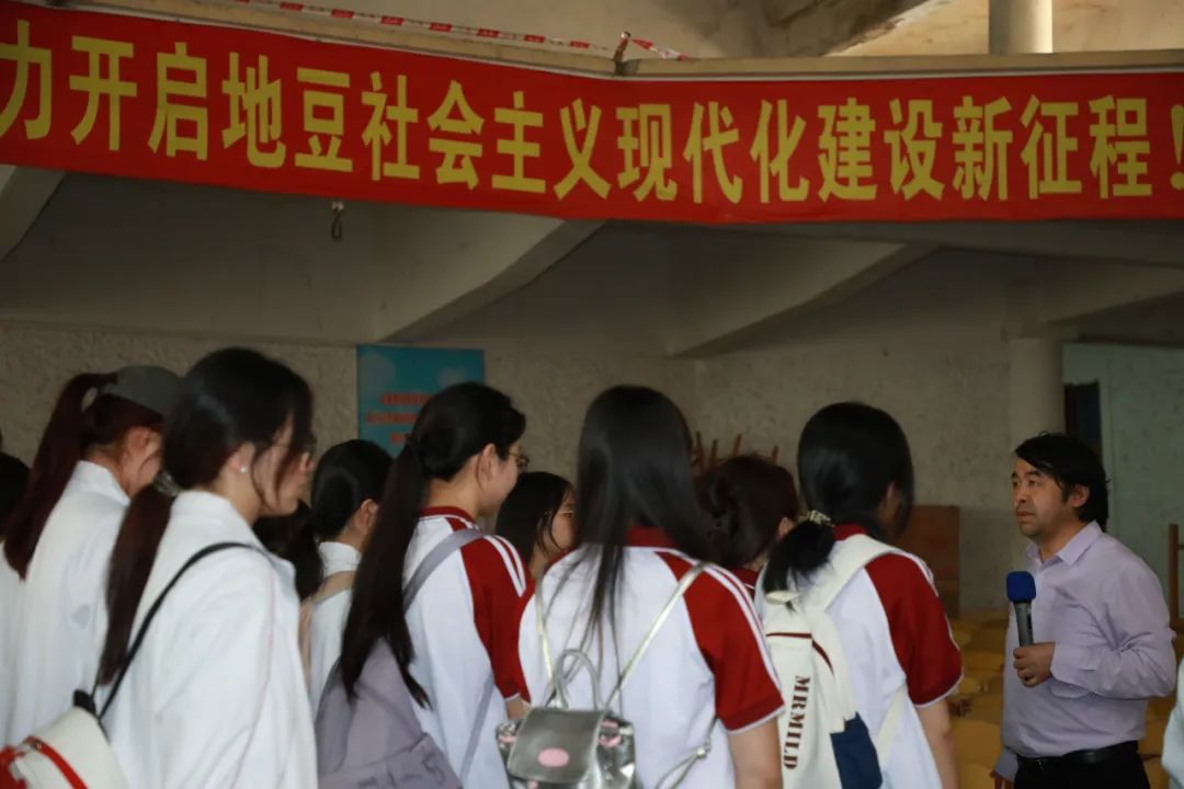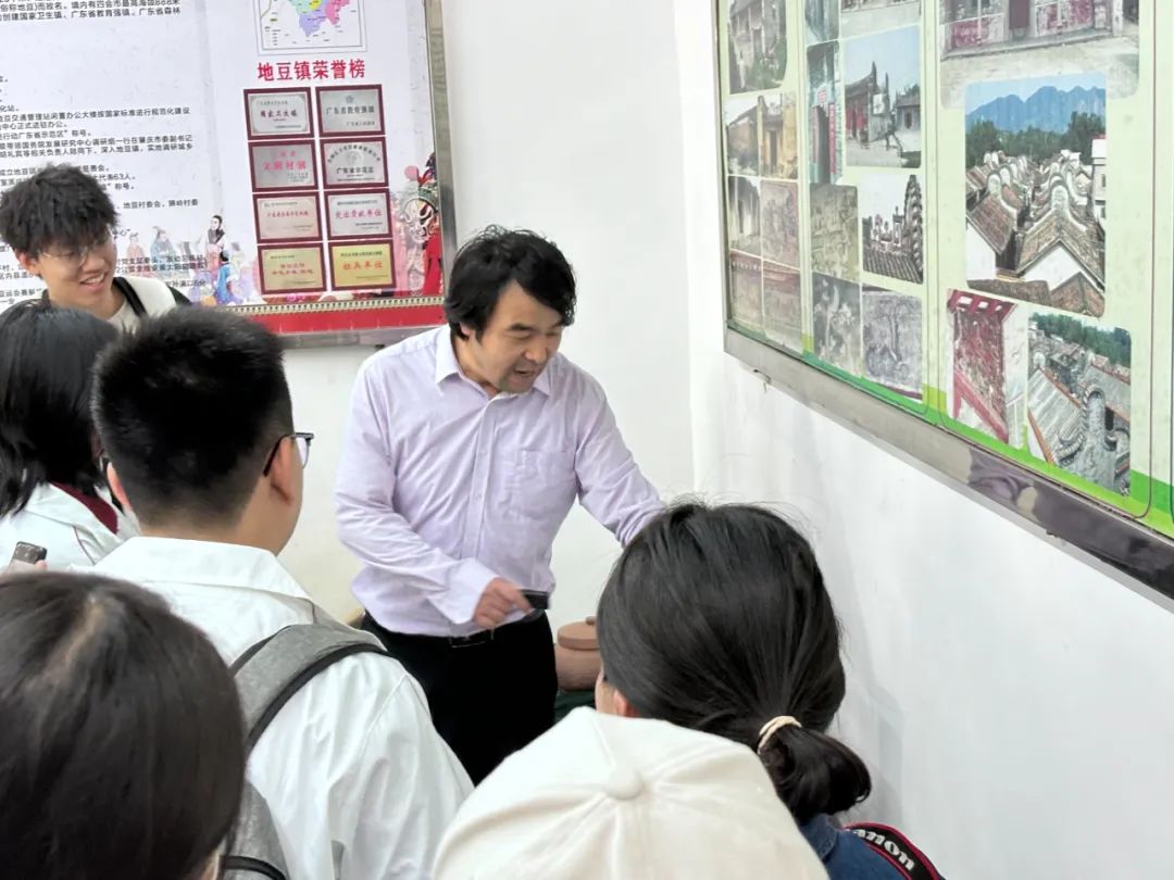 在参观完旧电影院后,活动队伍移步至地豆镇史馆。史馆通过图文展板、实物陈列等生动呈现了地豆镇手工业兴盛繁荣的景象。讲解员刘永才着重为同学们介绍地豆镇保存完好的陶瓷物件,串联旧电影院、非遗手工等节点,让文化遗产真正“活”在当下,助力乡村文化振兴。文物古迹与非物质文化遗产的交织,勾勒出一幅“历史可触摸、文化可体验”的鲜活图景。
