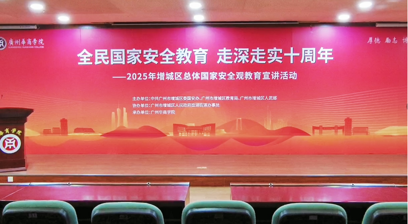 2025年4月15日是第十个全民国家安全教育日。为深入贯彻习近平总书记关于加强国家安全教育的重要指示精神,增强全民国家安全意识和素养,汇聚共同维护国家安全的强大合力,4月8日,“全民国家安全教育 走深走实十周年”2025年增城区总体国家安全观教育宣讲活动在我校成功举办。增城区国安办、教育局、人武部相关领导以及增城区各高校领导、宣讲教师参加本次活动。我校党委书记陈玉欢教授,校党委副书记、纪委书记吕峻闽副校长,校长助理张军教授、杨宪主任,党委保卫部杨燕平部长,校团委陈刚书记以及后勤保卫处梁艳副处长出席本次活动。