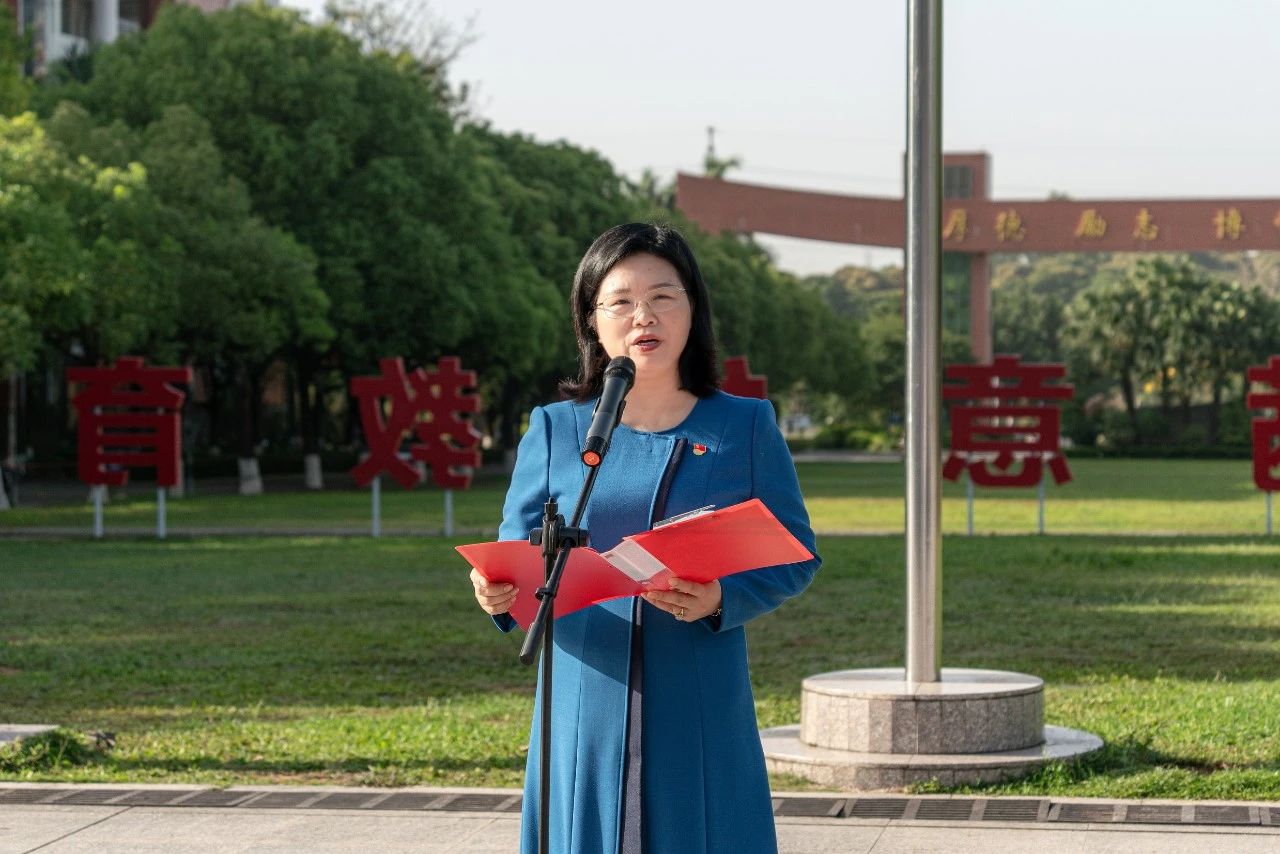 两校区学生代表在国旗下作表态发言。广州校区党员学生代表教师教育学院的黄灵同学表示,筑牢防线,使命在肩。国家安全,人人有责,需要每个人从细微处践行担当。作为新时代青年党员,要胸怀”国之大者”,继续以身作则遵国法校纪,参与平安校园与国家安全建设,提升综合素质,以实际行动筑牢国家安全防线。肇庆校区学生代表数字经贸学院郑满冰表态:维护国家安全没有局外人,大家都是参与者。要继续强化思想武装,筑牢安全意识,从学习、践行、理想三方面增强国家安全意识,强化认识、提升素养,知行合一、融入日常。