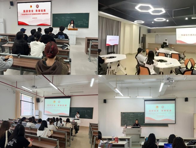 全民国家安全教育日主题讲座。4月15日,党委学工部、党委保卫部、校团委与马克思主义学院在广州校区励志楼C408展开2025年总体国家安全观专题培训会。增城区保密局局长通过典型案例、数据,为同学们呈现了生动深刻的国家安全实践课。他围绕总体国家安全观的核心要义,系统梳理了国家安全涵盖政治、军事、经济、文化、网络等20个重点领域,强调了在新时代背景下,维护国家安全的紧迫性和重要性。