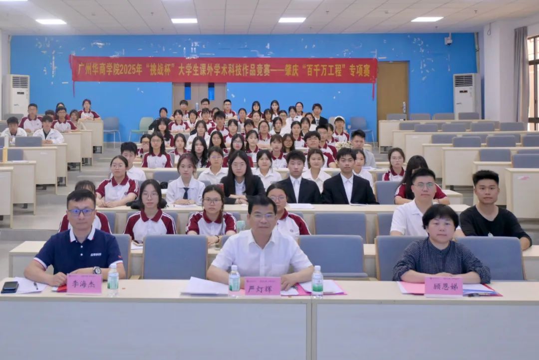 为深入学习贯彻习近平总书记关于青年工作的重要思想和对广东系列重要讲话和重要指示精神,认真贯彻落实省委“1310”具体部署,助力深入实施“百千万工程”,引导大学生关注县镇村发展需求,促进高校科研成果与地方产业需求对接,4月15日下午,广州华商学院2025年“挑战杯”广东大学生课外学术科技作品竞赛——肇庆“百干万工程”专项赛在肇庆校区8号楼108顺利开展。