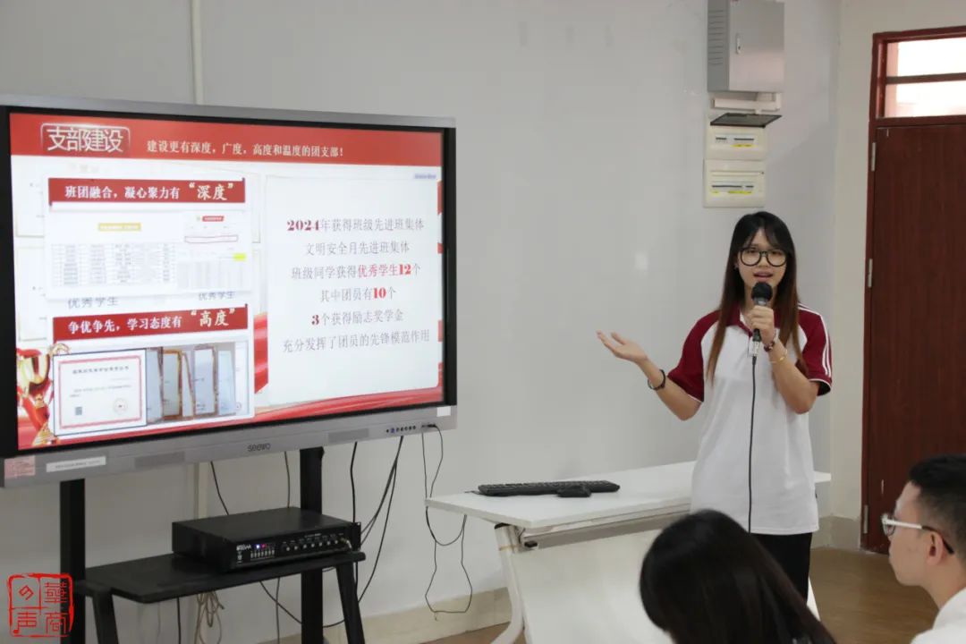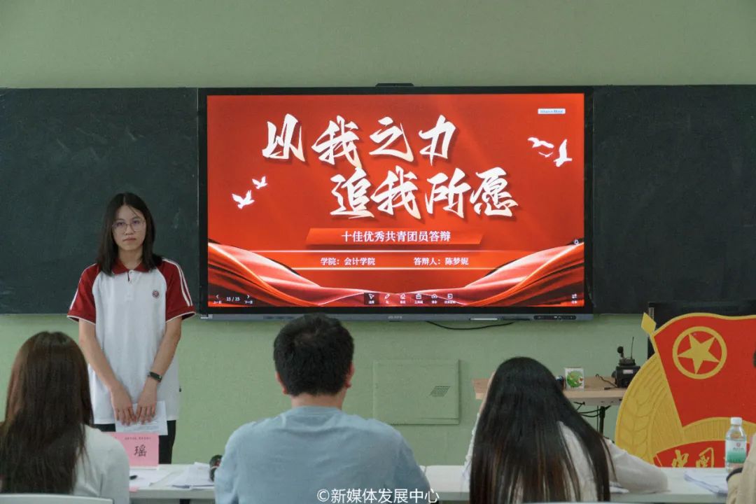 十佳团支部:22级新闻学3班团支部等10个团支部代表依次答辩。各团支部负责人从思想引领、组织生活、学风建设、社会实践、团组织生活等维度切入,通过PPT生动呈现团支部过去一年的建设成果。汇报中,他们展示了常态化开展的主题团日活动,分享在志愿服务、学科竞赛中的亮眼表现,充分展现出团支部积极向上的精神风貌与强大的凝聚力。各团支部代表还围绕加强团员思想教育、创新活动形式、提升服务能力等方面提出规划,立志进一步发挥团支部的战斗堡垒作用,团结带领团员青年在新时代展现青春担当。