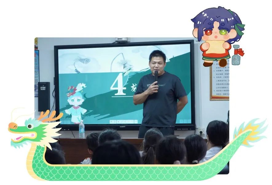揭阳龙舟特色课程似一场流动的文化盛宴,将理论的厚度与实践的温度巧妙融合。实践团邀请潭王村龙舟队队长王伟歆入校为学生开展生动的理论课程,没有刻板的说教,而是用带着乡音的幽默话语,讲起自己从小与龙舟为伴的日子——清晨的江面如何泛起金光,船头的鼓点怎样敲碎水雾,还有那些与队友在运动场上挥洒汗水的故事。这场对话,让书本上的文字长出了筋骨,非遗民俗不再是遥远的符号,成了能触摸到的精神力量。