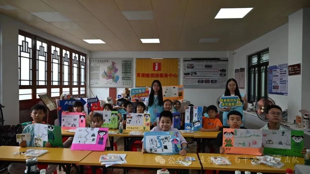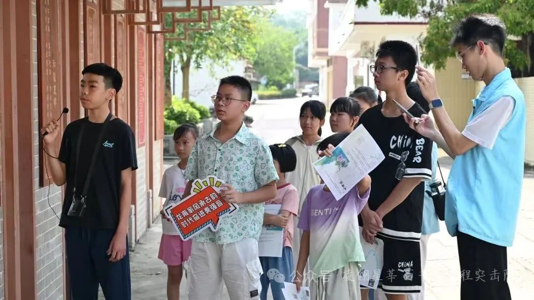 队员们以“培育青少年文化传承人”为抓手,以“寓教于乐”的方式赋能文化传承,创新采用“系统培训+实地演练+直播展示”的互动模式,引导当地少年儿童沿“浩然楼—卢氏家风家训长廊—卢氏宗祠—龙头井—联芳里建筑群—百年大榕树”路线开展实践。孩子们在队员的专业指导下,生动讲述各景点背后的历史渊源与家风故事,通过直播镜头将龙头村的文化底蕴与精神内核传递给外界,有效推动了优良家风文化的活态传承。