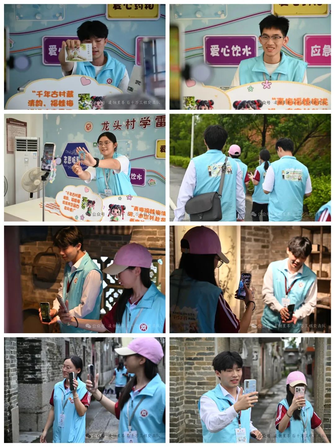 活动期间,队员们以“青春视角”解码乡村价值,创新采用“镜头语言+村民叙事+景点串联+文化故事”的融合创作模式,深入龙头村古民居群、生态农田、民俗活动点等特色区域。队员们以专业视角,细致捕捉村落肌理中蕴含的历史记忆与时代活力,将传统农耕文化、宗族家风、生态保护等元素具象化呈现,为后续宣传片制作积累了丰富素材。