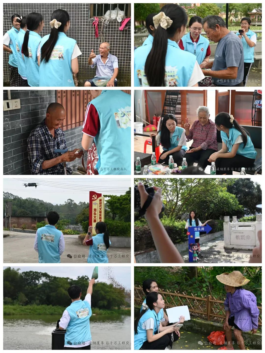 实践期间,同步启动四场直播活动,依托抖音、微信视频号等主流新媒体平台构建传播矩阵,采用“全景扫描+细节解读+实时互动”三维呈现方式。通过无人机航拍展示龙头村“山水林田湖”生态格局,以行走镜头探访卢氏宗祠、百年古榕等文化地标,结合“你问我答”环节回应网友关于乡村旅游路线、特色农产品等关切。直播中系统介绍了当地在基础设施升级(如村内道路硬化、污水处理设施建设等)、特色产业培育(如优质有机韭菜种植基地打造、渔亿水产养殖专业合作社的发展等)以及乡风文明建设(如新时代文明实践站常态化活动等)方面的成效,生动诠释“党建引领、政府主导、群众参与”的乡村振兴实践路径。