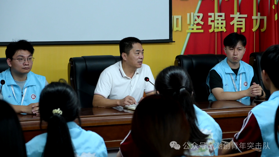 在交流环节,潮创青年突击队与陈金中书记围绕"共享农场"项目的文化赋能路径展开深入探讨。突击队代表建议,可依托团队在新媒体传播领域的优势,通过短视频记录农耕文化、非遗技艺等特色内容,打造"文化+农旅"融合品牌。