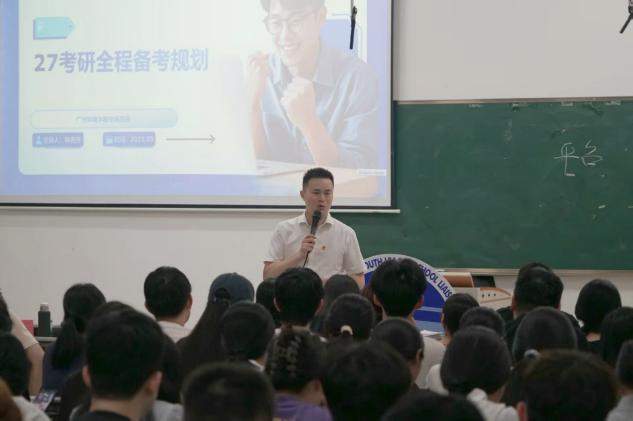 为助力学生明确考研方向、科学规划备考路径,2025年9月4日,华商学院肇庆校区开展“团团促就业”系列之全程考研备考规划宣讲会,吸引众多学生参与。