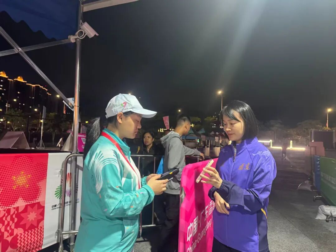 运动员队伍,会有外国教练,那么我们就涉及到语言沟通的问题,因此我们要辅助他们完成购票验票以及进场的这一个过程的工作。如有遇到残障人士前来观赛,我们也会耐心地给予指引,让他们顺利进场观赛。