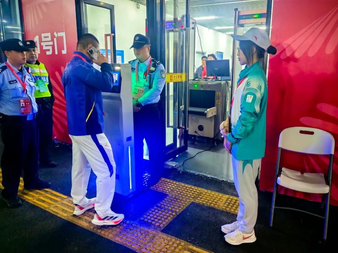 我的工作是外场查验口,是在1号门,就是负责运动员入场这一版块,就是督促他们滴卡刷脸入场,以及检验他们的包裹,帮助他们把包裹进行安检,引导他们进入副馆热身。
