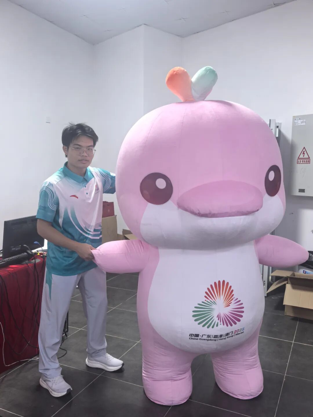 我是吉祥物人偶志愿者,我扮演的吉祥物是乐融融。我很开心,能带给他人情绪价值,能赋予乐融融活力,它赋予我精神动力,我们互相成就。赛事已然落幕,我也脱下了“乐融融”的服装,但那份想要传递快乐、温暖他人的心却永远留了下来。这段独特的体验,是我青春纪念册里最闪耀的一页。未来,我将继续带着“乐融融”的精神,在人生的每一个舞台,发光发热,将这份来自四会、来自十五运的温暖与快乐,传递到更远的地方。
