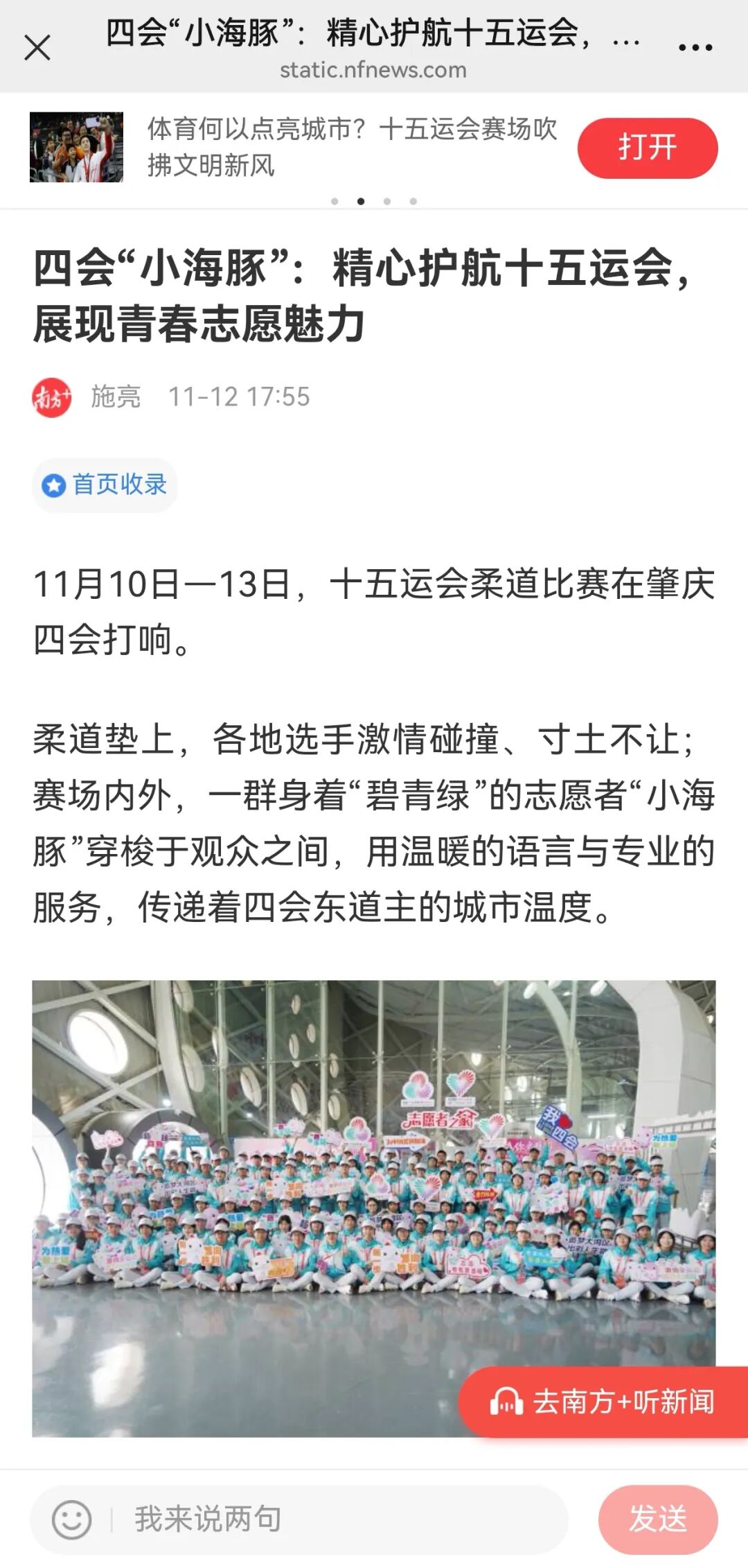 11月10日-13日,十五运会柔道比赛在四会市体育中心体育馆火热进行。运动健儿在赛场上奋力拼搏、绽放光芒;而在掌声与欢呼的背后,240名华商“小海豚”身着统一服装,穿梭于赛场内外的每一个角落。赛事期间,志愿者日均服务超12小时,累计服务时长突破16000小时,以“零失误”标准完成此次赛事志愿服务工作,获参赛选手及观众一度好评,为湾区添彩,为祖国争光,为成功举办一届“简约、安全、精彩”的体育盛会贡献华商志愿力量。截至目前,华商“小海豚”志愿服务受南方+、肇庆+、西江日报、四会电视等多家媒体报道。