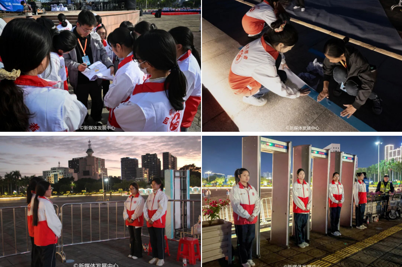 11月21日晚,2025中国·四会玉文化节(第21届)开幕式暨颁奖晚会在四会市人民广场举行。晚会的顺利运转,离不开幕后志愿者们的默默付出。他们分散在入场检票口、嘉宾引导、观众指引、颁奖礼仪、吉祥物人偶、展销区等关键岗位。他们以全方位的服务确保了晚会流程的顺利运转,用实际行动诠释了“奉献、友爱、互助、进步”的志愿精神。
