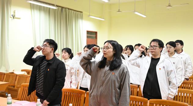 陈颖琳同志带领全体党员进行入党宣誓。在铿锵有力的誓词声中,全体党员进一步强化了身份意识、宗旨意识和责任意识,坚定了为共产主义事业奋斗终身的理想信念。