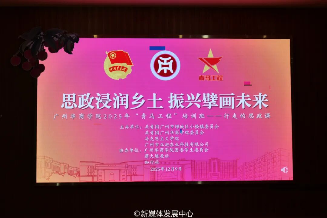 为深入学习贯彻党的二十届四中全会精神,推动“行走的思政课”实践教学创新,深化思想政治理论课教学改革,推动理论教育与社会实践深度融合,12月9日下午,学校团委组织校级“青年马克思主义者培养工程”培训班组织师生前往增城区小楼镇,开展一场别开生面的“行走的思政课”主题实践活动。本次活动依托小楼镇本土文化资源与正旭现代农业孵化园平台,结合环境卫生志愿服务展开系列活动。校团委陈刚书记、校团委团干杜楚欣及80名青马班骨干代表参与其中。小楼镇政府、正旭农业科技有限公司及江坳村委代表共同参加。
