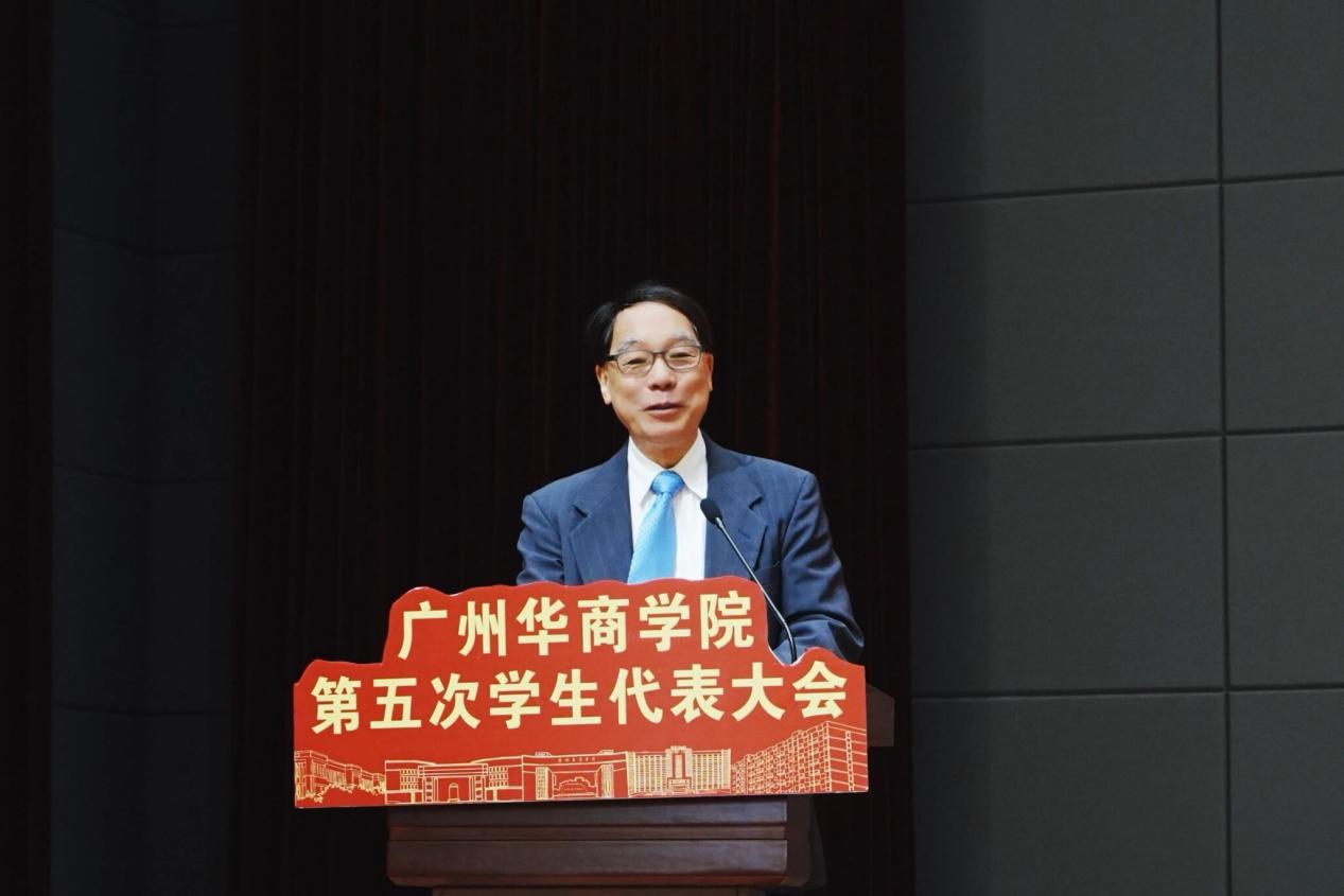 ——大会开幕式暨第一次全体大会。12月14日10:00,广州华商学院第五次学生代表大会开幕式暨第一次全体会议在广州校区会议展览中心华僖礼堂召开。校党委书记陈玉欢教授,中国科学院院士、广州华商学院首席科学家陈新滋教授,校党委委员、党委办公室吕书勉主任,校党委委员、党委宣传部刘苗部长,校党委学工部黄国富部长,校纪委委员、纪委办公室黄秋铭主任,校党委组织部王国庆副部长,校团委常委、创新创业学院宋元跃副院长,校团委兼职副书记任欣鹭,管理学院党委副书记陈纯华,文学院党委副书记郭堪通,健康医学院党委副书记杨李军,外国语学院党委副书记谢清明,体育学院党委副书记莫军,数字传播学院谢树萍老师,数智文创学院学工负责人罗玉凤老师以及校院两级团学教师、各学生代表出席本次大会。