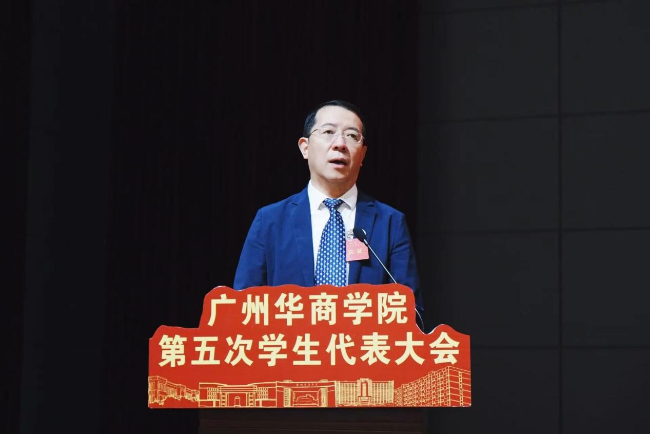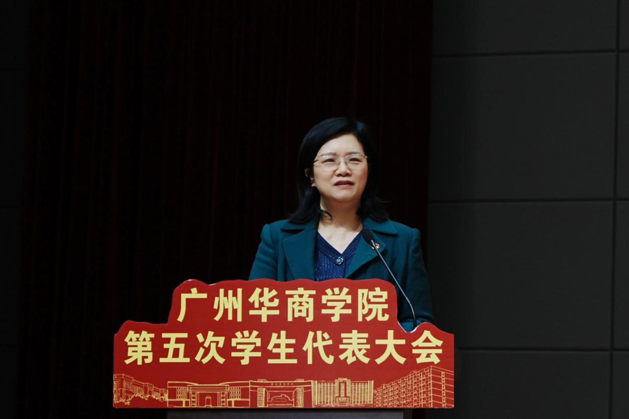 校党委委员、党委办公室吕书勉主任致开幕词。她指出,本次学代会正值学校推进“十五五”规划、冲刺本科教学合格评估、献礼二十周年校庆的关键节点,是全体学子参与学校建设、共绘未来的盛事。她表示,学校正以高质量发展为主线,奋力建设高水平应用型大学。学生会应继续凝聚同学,把青春动能转化为服务学校发展、区域建设的澎湃力量。最后,吕书勉主任宣布广州华商学院第五次学生代表大会隆重开幕,并预祝大会圆满成功。