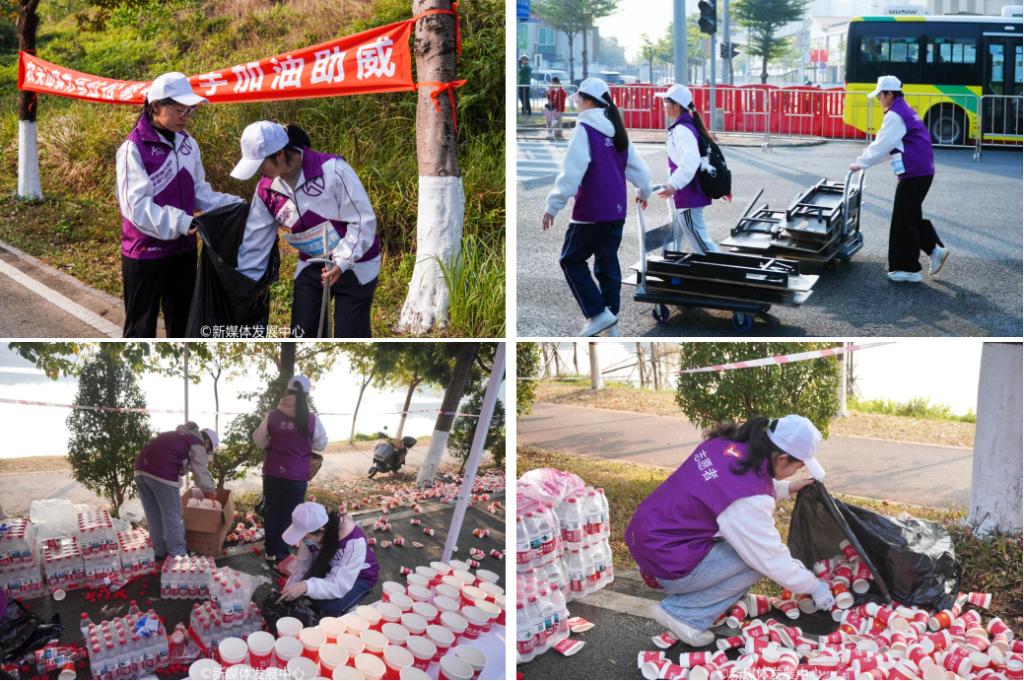 ——赛事现场,专业服务暖人心。为助力“百千万工程”,引领华商青年弘扬“志愿 奉献 互助 友爱”的志愿精神,以实际行动服务湾区大事,在学校党委领导下,我校团委为组织近600多位师生志愿者服务赛事。校团委书记陈刚书记,党委办公室谢嘉希,校团委专职团干杨图珍、胡万培、何以立、曾璴琪、陈颖琳、杜楚欣,文学院团委书记王怡荻、健康医学院李梓怡等教师带队。师生志愿者怀揣满腔热忱,划分为多个工作组参与志愿服务工作,奔赴一场与新年奔跑的温暖之约。