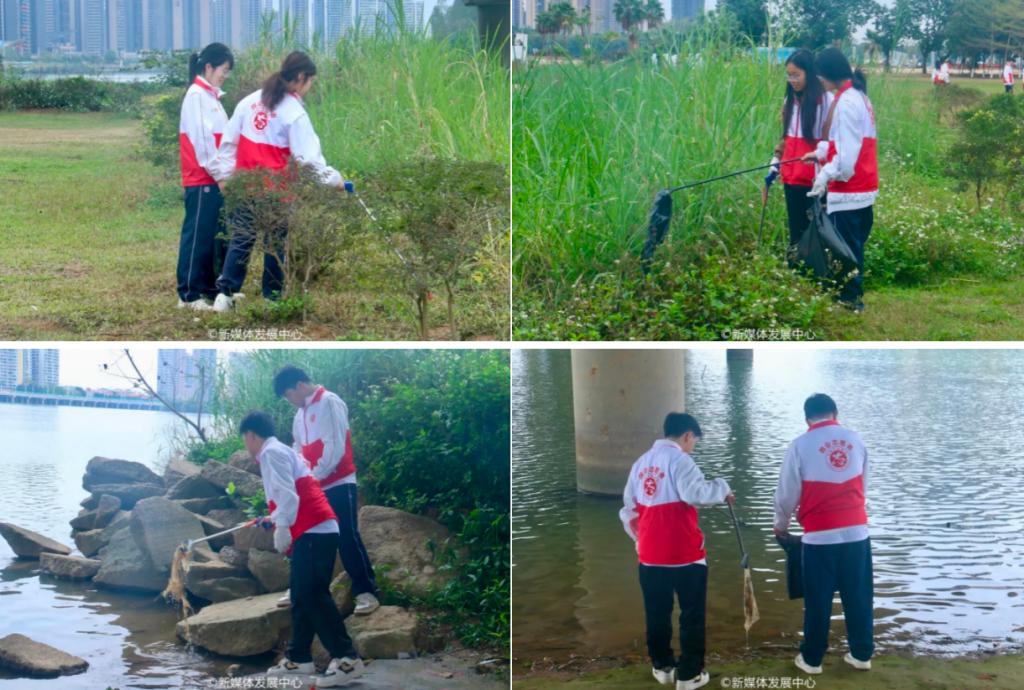 活动当日,华商青年志愿者们身着红色志愿马甲,手持垃圾夹、分类垃圾袋、长柄网兜等工具,在工作人员的带领下整齐集结、整装待发,以饱满热情开启守护母亲河志愿行动。