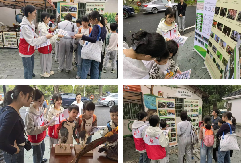 青年志愿者们在现场布置鸟类标本与保护宣传展板,展示本地常见野生动物及保护知识,并向群众发放普法折页、讲解《野生动物保护法》相关知识,组织开展“识鸟认兽”互动游戏,以轻松有趣的方式向游客普及生态保护理念。